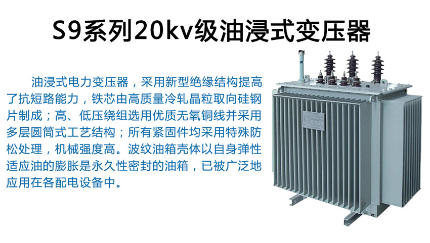 S9系列20kv級(jí)油浸式變壓器為配電網(wǎng)絡(luò)與工礦企業(yè)供配電系統(tǒng)中的重要設(shè)備,在工礦企業(yè)、農(nóng)業(yè)和民用建筑中廣泛使用,也可用于石油、化工行業(yè)中多油污、多化學(xué)物質(zhì)的場(chǎng)所。使用環(huán)境:戶外/戶內(nèi)使用,海拔不超過(guò)1000m。